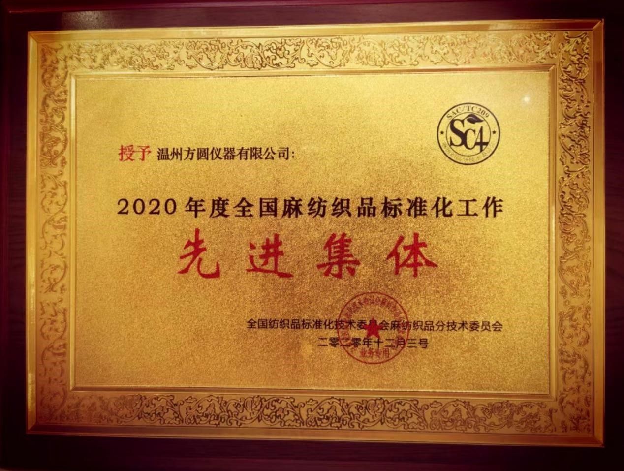 中國麻紡行業(yè)協(xié)會會長、全國麻紡織品標準化技術(shù)委員會董春興主任作了麻紡行業(yè)的形勢分析,同時也對麻標委接下來的工作安排提出了要求。本次大會還表彰了2020年度標準化工作先進單位、先進個人和優(yōu)秀觀察員。溫州方圓儀器有限公司憑借多年以來在紡織行業(yè)的突出貢獻被評為2020年度全國麻紡織品標準化工作先進集體。